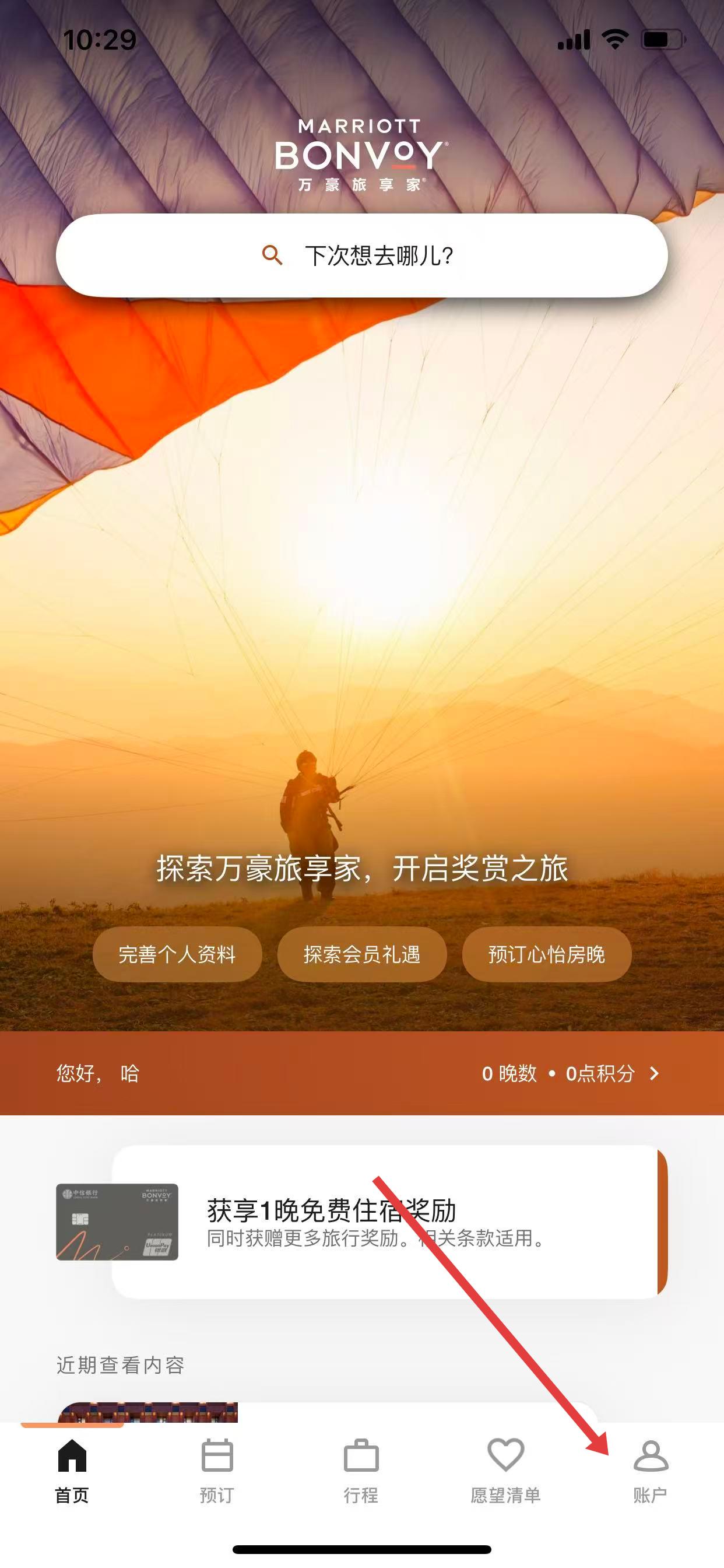 访问您的万豪礼赏帐户