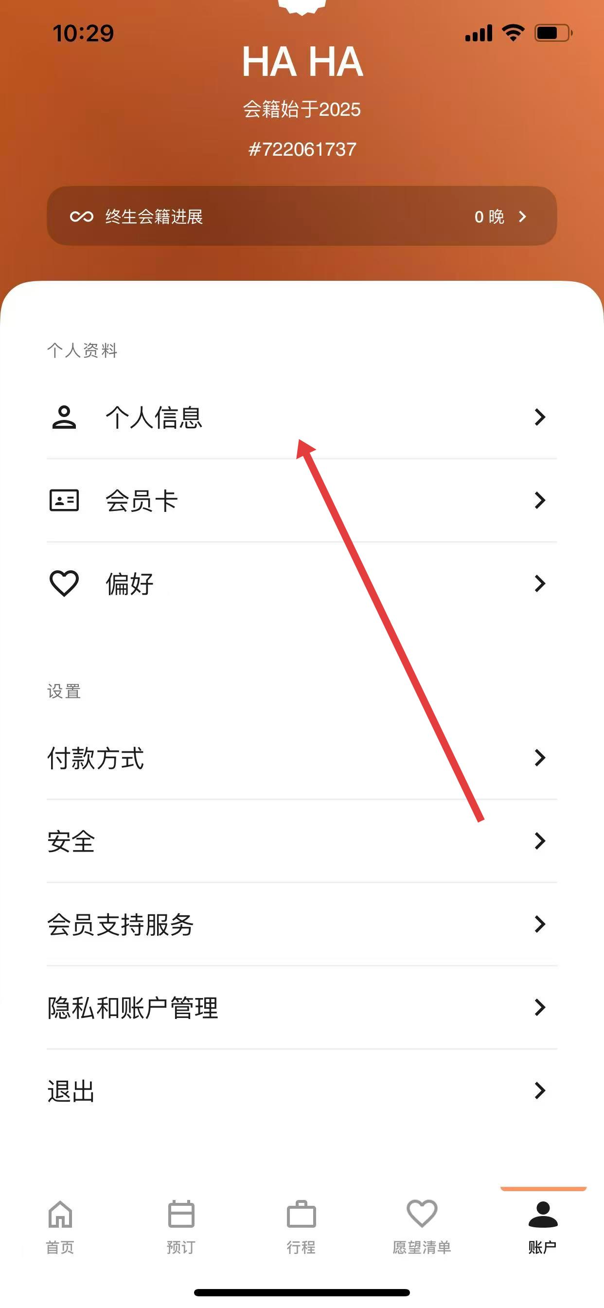 2、在账户页面,点击个人信息选项。