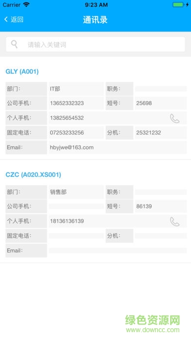 可以按照姓名或部门快速找到需要联系的同事,两种方式一键切换。列表清晰明了,节省了查找人员的时间。在找到同事的同时,一键拨打电话,提升了沟通效率。