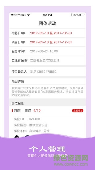 一款不错的志愿者服务软件!本软件为志愿者们提供了公益活动在线报名、志愿者打卡、志愿者资讯阅读等功能。是河北志愿者必备的手机应用