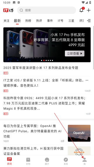 1、打开IT之家APP,点击底部导航栏的我,进入个人页面。