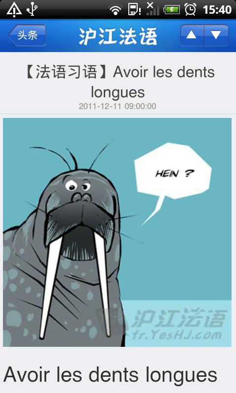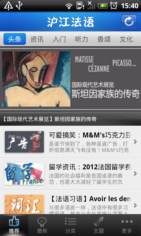 沪江法语听说读是一款很很强大的法语学习软件。软件依托于资源庞大、人气旺盛的沪江法语网站,为你24小时不间断提供最新法语资讯和学习资料。手机轻松一点,听力、文化、香颂、资讯,各种法语素材尽在掌握。清新简洁的页面,丰富及时的内容,让你玩转法语世界。文字、图片等多媒体阅读体验、内置音频播放器,边看边听边读,全面提升你的听说读技能。安装法语听说读,让法语真正伴你左右吧!