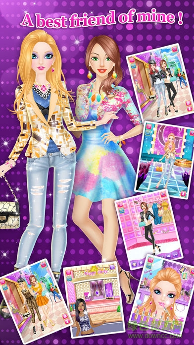 打开时尚沙龙,选择一个你喜欢的时尚女孩,游戏开始后,你会看到你选择的女孩出现在一条繁华的街道上。首先映入眼帘的是四个可以为女孩或其闺蜜梳妆打扮的房间,然后通过滑动屏幕你可以浏览另外三个用于展示的场景,在这些场景里,你可以肆意沐浴阳光、大胆走上T台以及尽情享受派对!如果你在这里觉得有些小孤单,不如把你的闺蜜叫出来?点击右下角的女孩图标就可以啦!噢,别忘了,当你回到街道时,可以点击右上角的图标来挑战每日任务,如果挑战成功了,你将为你的闺蜜赢得新的闪亮装扮!现在,是时候轮到你来引领风尚、成为时尚潮流的掌舵人啦!