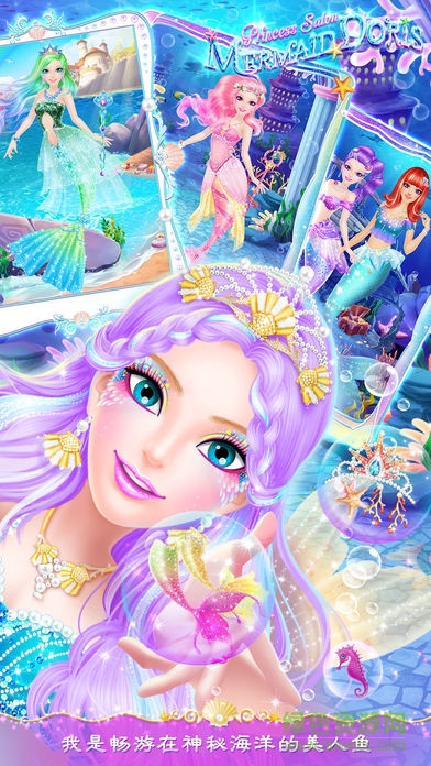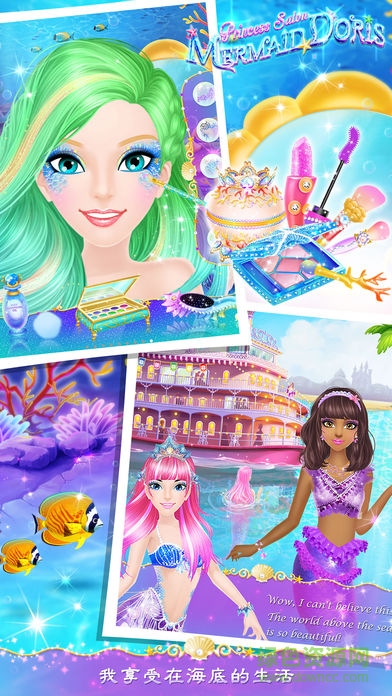打开游戏进人鱼世界,开启冒险之旅,梦幻神奇的童话生活让你身临其境!先来享受舒适的SPA吧!清洁面部,敷上面膜,享受花瓣蒸熏,让各式各样的深海美容护肤品给你极致的海洋SPA体验。美丽的人鱼公主可不止有光滑的肌肤和漂亮的鱼尾,还需要一个精致的妆容哦。接下来到化妆间,为自己画一个靓丽的妆容吧。美美的人鱼公主,想要看看陆地上的世界吗?悄悄告诉你美丽的女巫可以帮助你哦。在她的指引下制作魔法药水变身人类,邂逅迷人的王子。等等…走之前可别忘了挑选一件美美的裙子好好装扮一下自己,清新淡雅还是俏皮可爱?请你的朋友们帮你参考吧,现在就邀请海底的好朋友一起冒险,和小伙伴一起探寻人类世界的秘密吧!