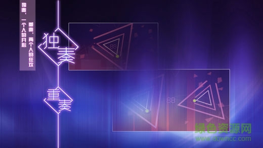 屏幕一分为二,两个三角形不停的旋转,要控制好两个小球躲避障碍,实在是考验你眼力、反应力和动作的一种模式,如果实在应付不来,更可叫上身边的小伙伴一起来,来一场默契十足的双人二重奏。