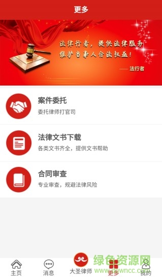 拥有在线咨询功能,文书下载功能,合同审查功能,案件委托,律师合作功能。