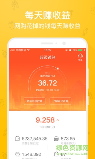 在平台累积的花钱金额,每天产生利息收益,稳稳地为您生钱。