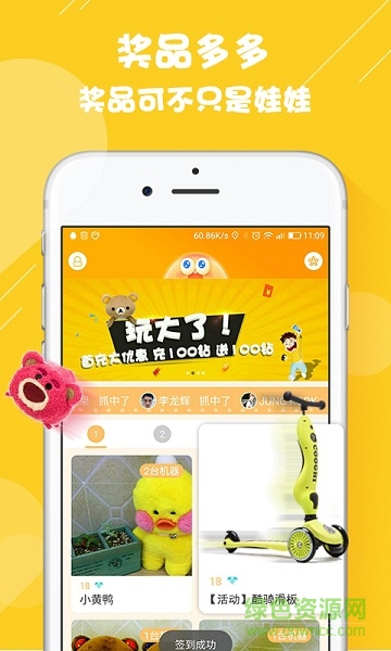 网络抓娃娃app通过直播来抓娃娃的休闲益智游戏,把电玩城真实娃娃机搬到手机屏幕上,足不出户也能享受抓娃娃乐趣,抓到的娃娃统统包邮送到家,心动就到绿色资源网下载体验吧!