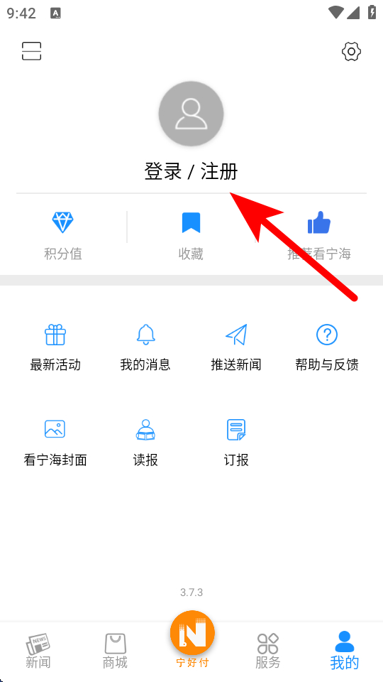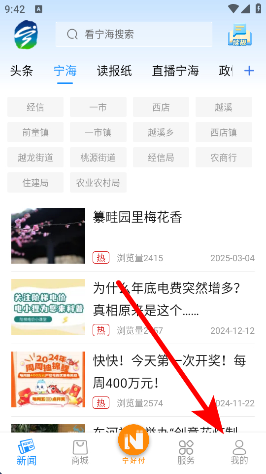 1、打开看宁海APP首页,点击底部我的,进入个人功能的页面。
