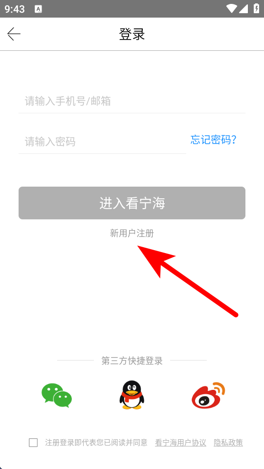 3、在登录注册选择界面,点击新用户注册,进入账号注册填写页面。