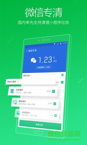 手机缓存清理软件是一款功能强大的手机缓存清理工具,能够帮助用户快速清理手机内没用的垃圾,增大手机的内存,同时能够帮助用户管理手机内的文件以及其它软件,需要的用户快来绿色资源网下载吧!