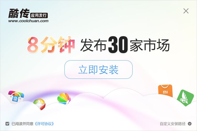 酷传是北京酷传科技有限公司打造的极速、智能的app发布平台致力于一键轻松上传,是为安卓手机应用开发者量身定制的免费、专业、快速高效的应用发布工具。