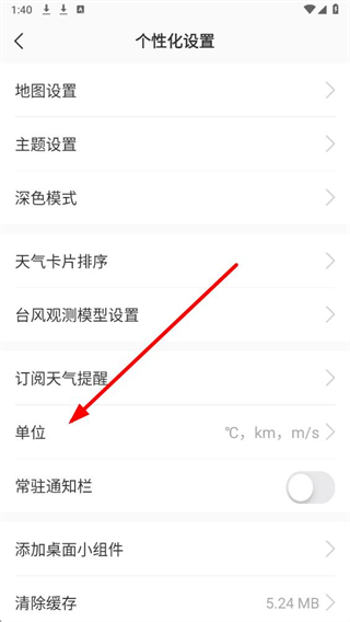3、在个性化设置页面,找到常驻通知栏选项,将其对应的开关开启,即可使彩云天气app常驻通知栏。