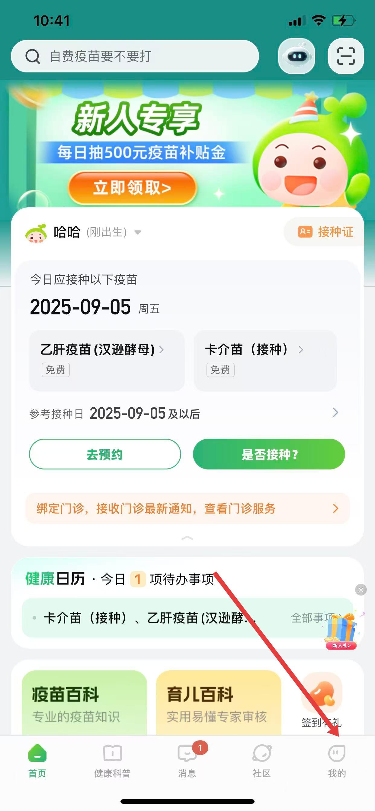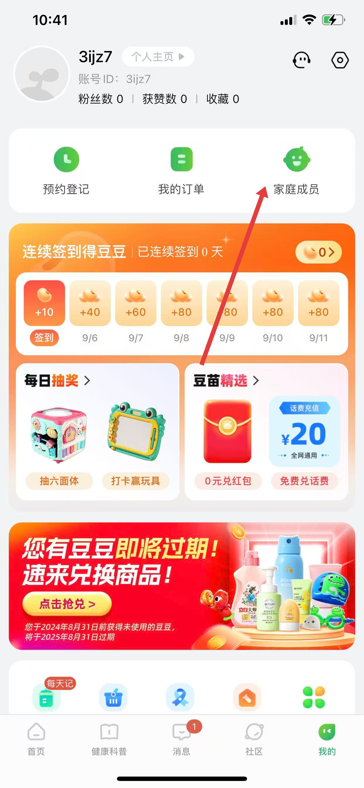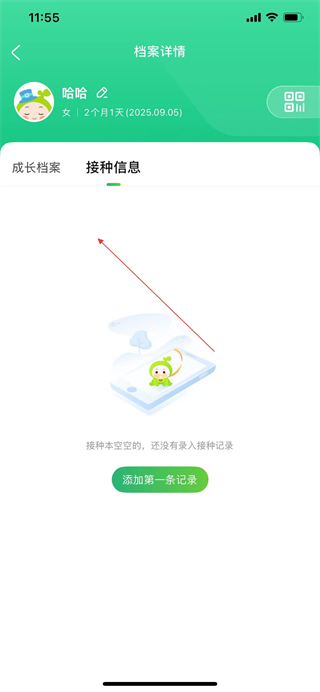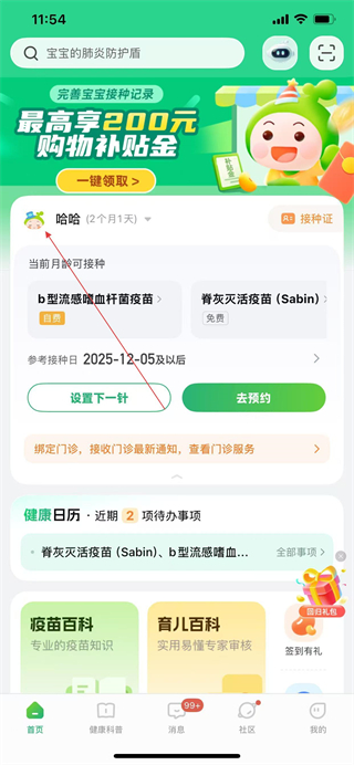 1、打开小豆苗APP,在首页点击宝宝头像,进入档案详情页面。