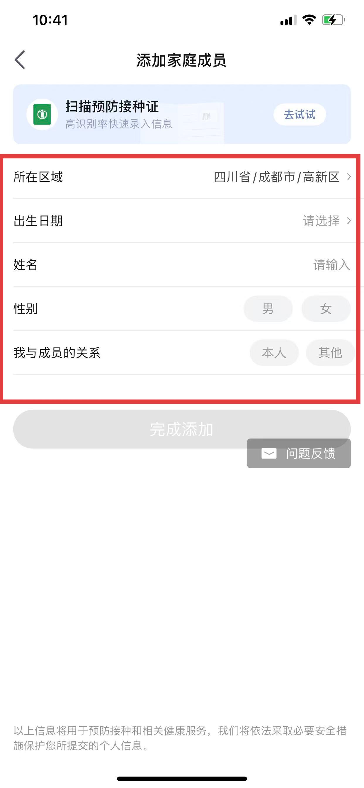 4、进入添加家庭成员页面,填写信息,即可成功添加第二个宝宝信息。
