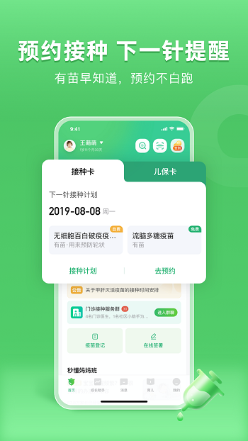 根据宝宝年龄,灵活定制接种计划并智能提醒接种时间;