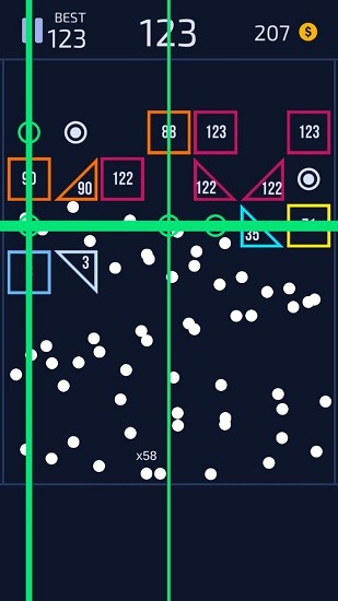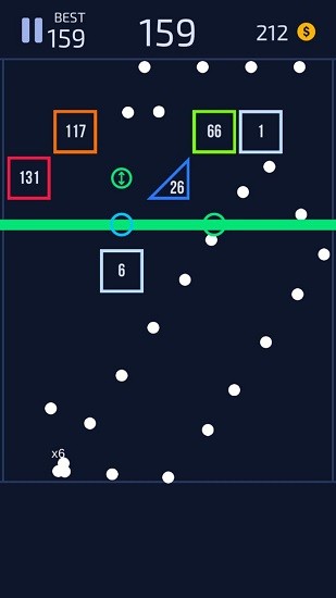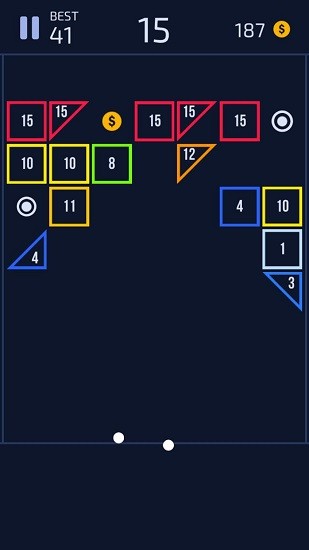 超级时间杀手游戏,放松你的大脑!滑动你的手指,发射小球将方块击碎,在方块们落到底部之前,尽可能都击碎它们,收集沿途的宝贝,以获得更多炫酷的小球!越玩到后面,方块的量级会越大,看起来简单,想拿高分可得下点功夫。别忘了,角度是关键!