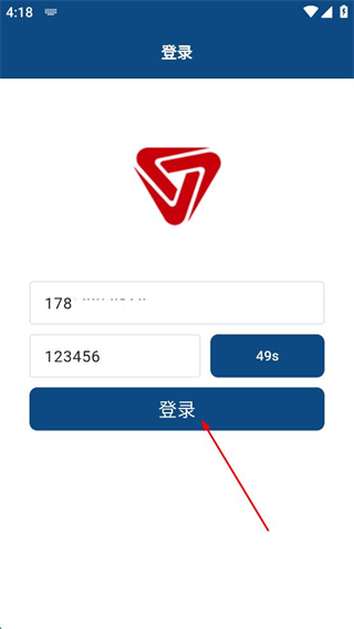 1、在登录界面,输入手机号,点击获取验证码,输入验证码。