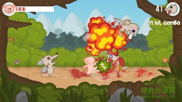 简单的画面,可爱的小猪需要面对凶猛的狼群,小猪会武艺狼也挡不住。