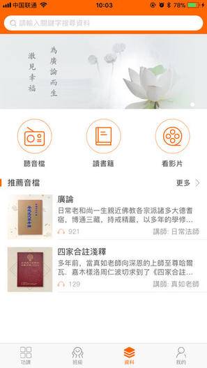 我的功课:听带、背书、诵经、开示影片,都可放入个人学习清单。