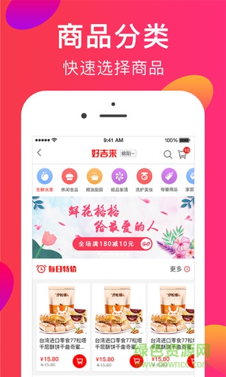 好吉来app是一款超市购物app,日用百货样样俱全,价格实惠,全场满就减,外卖快递同城秒速到,安全便捷生活就来好吉来购物,欢迎到绿色资源网下载!