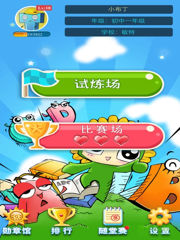 词汇总动员竞赛训练系统核心功能包括:试炼场、比赛场、排行榜。