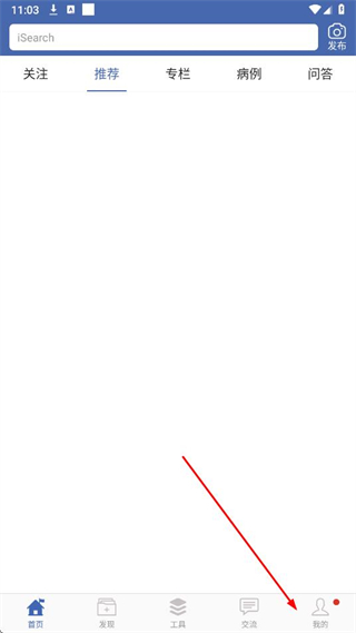 1、打开轻盈医学APP,点击导航栏中的我的。