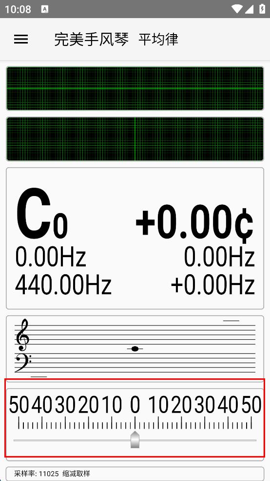 2、进入后可查看音高、频率等调音信息,还能通过下方刻度调节。