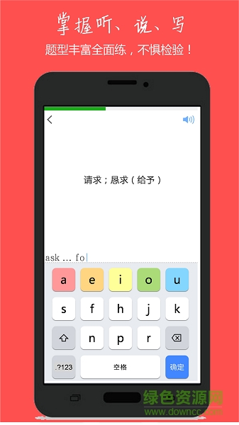 单词、短语和句型,多种题型,分组进行音形意三结合训练。一旦完成,即可达到知晓级。