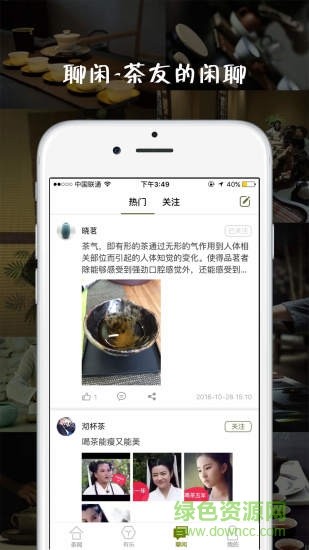 享茶乐是为广大茶友打造的一款茶叶资讯、茶叶交易以及喝茶交友的手机软件,在这里可以轻松查看各类茶叶信息,和志同道合的茶友在线交流!喜欢的朋友可以到绿色资源网下载体验哦!