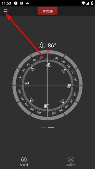 1、打开多多指南针app,点击页面左上角的菜单按钮。
