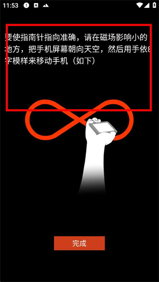 3、按照提示完成操作,点击完成,即可完成指南针校准。