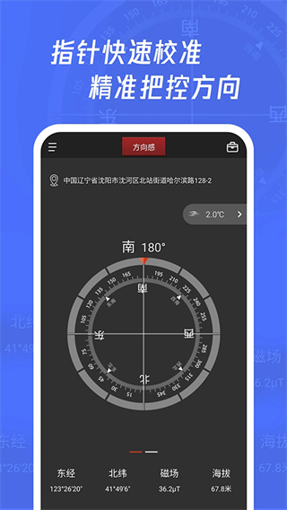 多多指南针,出行必备,让你快速找到方向感的指南针;简洁、准确,一秒辨别方向;同时还能够精确的为用户显示计算出当前所在地的经纬度,能够帮助用户轻轻松松找到方向!