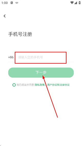 2、在手机号注册页面,输入您的手机号,点击下一步。
