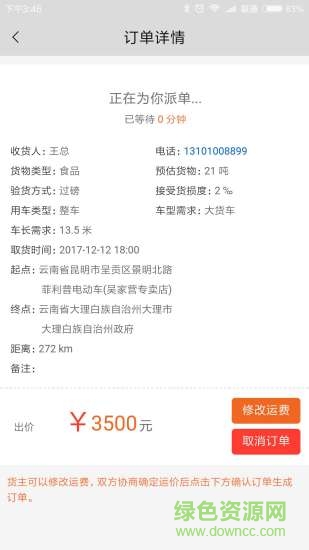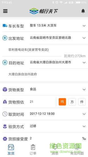 1. 搜索货源:根据所在地、目的地、车型和车长精准匹配货源;