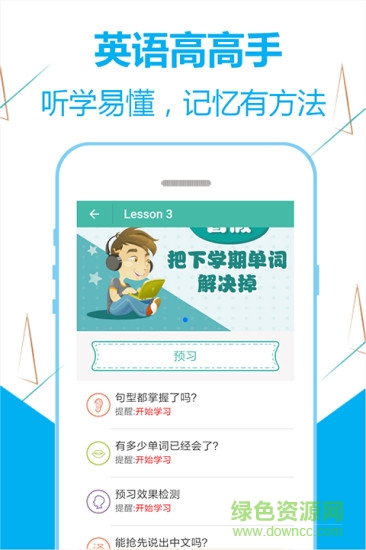 我们针对每个课时提供完整的学习流程,英语高高手涵盖1500个单词积累、700个常用短语,持续自然的拼音法训练快速提高孩子的英语能力,帮助孩子建立英语学习的强大自信和优势。