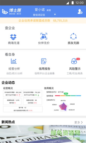博士匣app能够实现各类大数据的互联网分析服务,支持外部合作以及企业管理等众多的功能,帮助企业法人们实现最佳的战略服务,提升公司的各项业务效果,是一款十分不错的征信软件!