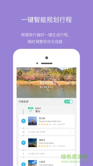 - 设定目的地和天数,根据旅行偏好一键生成行程;