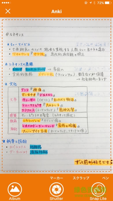 ankisnap app是一款非常便捷的学习记忆辅助手机软件,主要和荧光笔Pentel ankisnap配套使用,用手机对着标记的部分拍照,标记部分即会被黑色覆盖,用户则可以填写覆盖部分的内容,提升记忆力水平,喜爱的朋友赶快到绿色资源网下载体验吧!