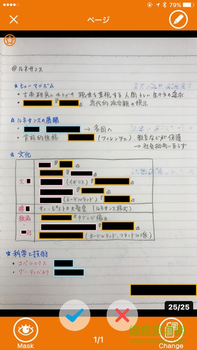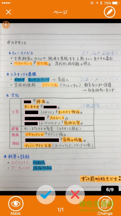 这是理想的记忆测试,如考试和资格考试。只要在课本或者纸上用荧光笔划出你需要背诵的部分,之后打开APP拍照,你划出的部分就会被自动遮挡,不会的时候点一下,黑框就消失了,简直是学生的利器!