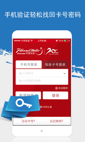 凤凰知音汇是一款手机航班类的app,是国航常旅客会员专属手机服务中心,你可以随时随地的查看登机信息等等,并且能买机票、住酒店,出示软件中的电子知音卡还能享受到不错的折扣。首家推出一键拍照补登功能,随身随地查看里程明细,尽享会员特权服务。特别推出权益商户功能,请您轻松查询会员专属权益商户,消费获赠奖励里程,还有更多会员专享优惠;牵手廿载、知音有你,老会员下载赠送800公里里程奖励,非会员下载、注册并完善个人信息赠送1600公里里程奖励。欢迎广大朋友下载!