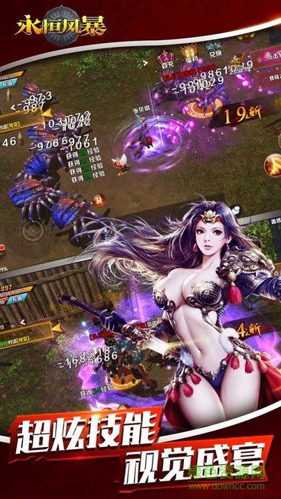 3、实时PK、多人组队、公会混战多种玩法,玩法丰富。