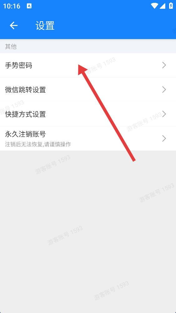 2、进入设置页面,点击手势密码选项。