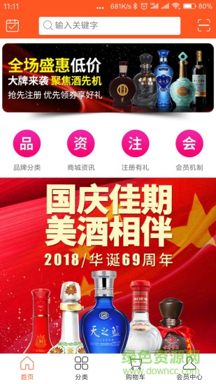 4.一键选酒:热卖好酒、名优白酒、红酒直采、喜宴用酒。