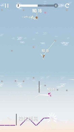 玩家通过绳索的牵引力让自己能在空中飞翔,获取更多的奖励和道具吧!