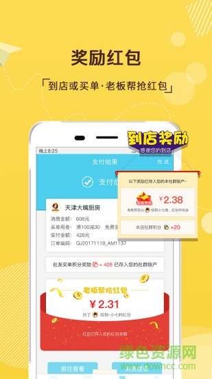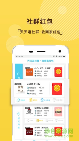 趣街app,能够让用户通过软件加入各大门店商家的内部社交群,通过商家群获取相应的福利,每天都有红包那,消费福利红包等等,花更少的钱享受更优质的消费服务,需要的用户用户快来绿色资源网下载吧!