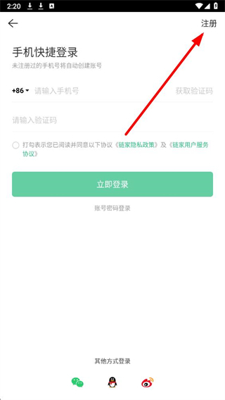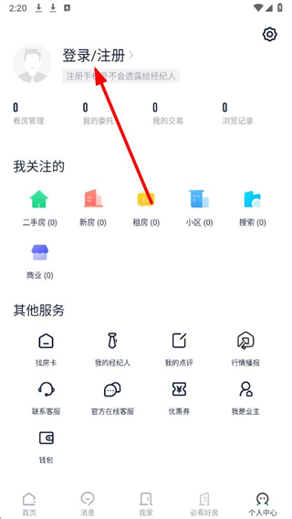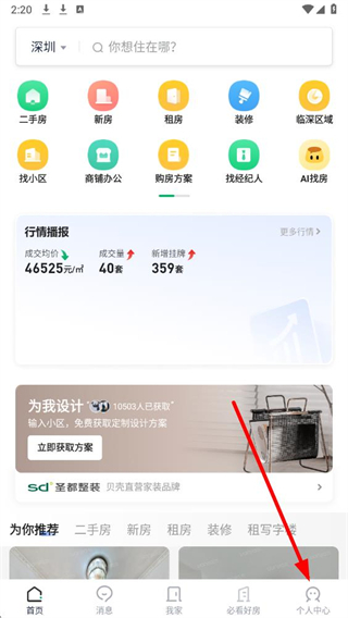 1、打开链家app,在首页点击底部的个人中心选项,进入个人页面。