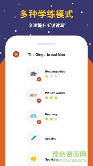 APP的线上练习和 Ladybird Readers分级阅读同步,有故事导读、单词卡片,句型学习,趣味测试,歌谣律动5大学习环节,练习课程遵循先学后测,循序渐进的学习规律,加上丰富的互动形式,帮助孩子轻松记忆核心知识点,全面提升听说读写能力。