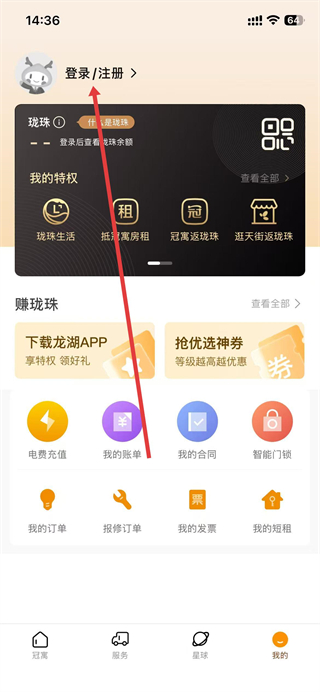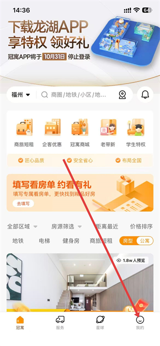 1、打开冠寓app,点击底部导航栏最右侧我的选项。