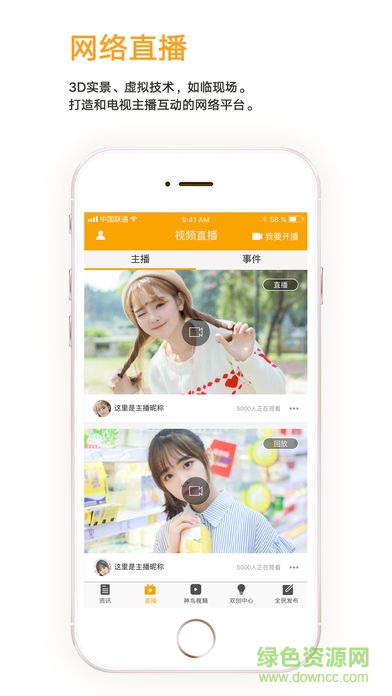 网络直播:3D实景、虚拟技术,如临现场。打造和电视主播互动的网络平台。